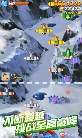 在商城中可以购买种类丰富的辅助道具,被击毁的敌机也有概率掉落不同效果的随机道具,助玩家飞得更远,战斗更爽!